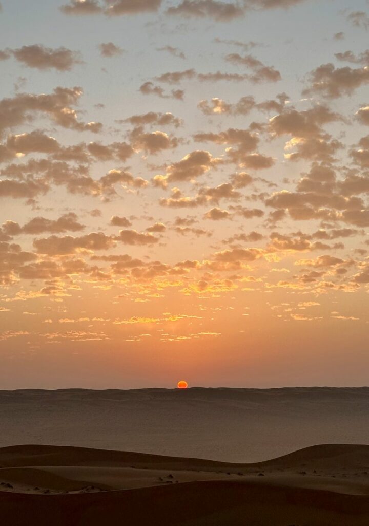 Si vous n’avez pas d’activité de prévue, prenez le temps de profiter pleinement du Wahiba Sands au lever du jour. C’est le moment idéal pour admirer les dunes sous une lumière douce, faire quelques photos ou simplement savourer le calme absolu.